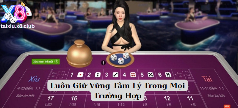 Mẹo chơi xóc đĩa X8 mà các cao thủ luôn khuyên những tân binh đó là giữ tâm lý vững vàng và sáng suốt trong mọi tình huống. Đừng cố gắng gỡ gạc, nếu như bạn thua liên tiếp quá nhiều ván. Sẽ có những thời điểm vận đen sẽ đeo bám khiến bạn không thể giành được chiến thắng như mong muốn. Chính vì thế, hãy bình tĩnh, tính toán số ngân sách mà mình đang có để không bị thua trắng tay.